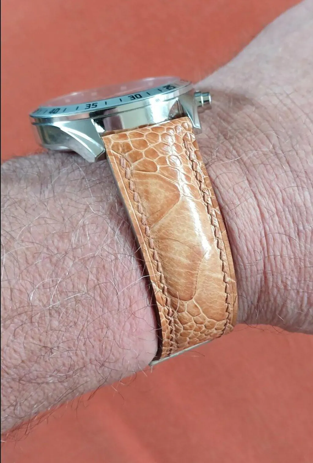 Very pleased and impressed with the quality of this strap. It took a few weeks to have shipped to CA but it was definitely worth it. I havent seen another strap with this quality and for this price anywhere.